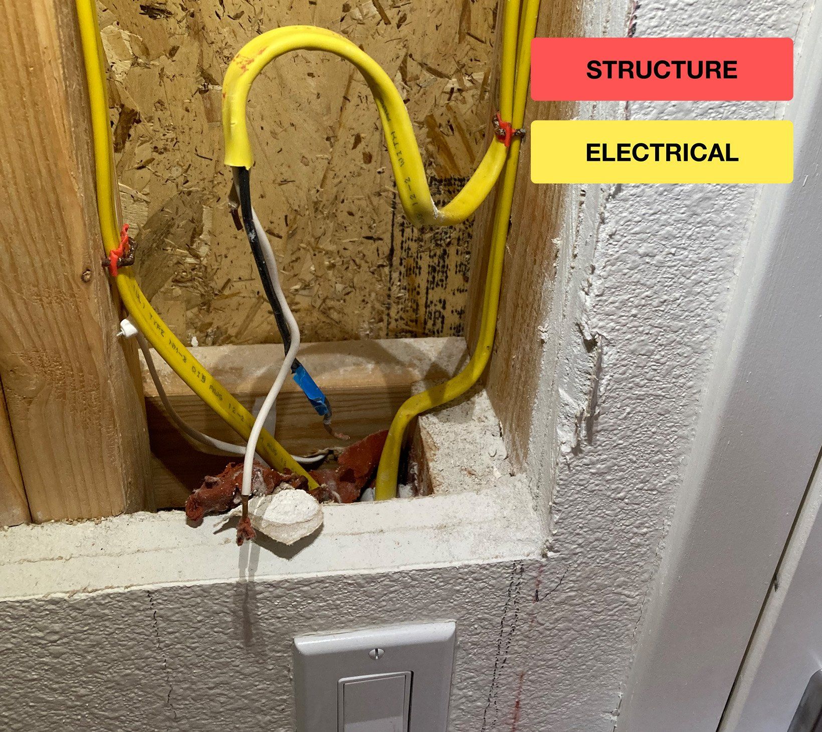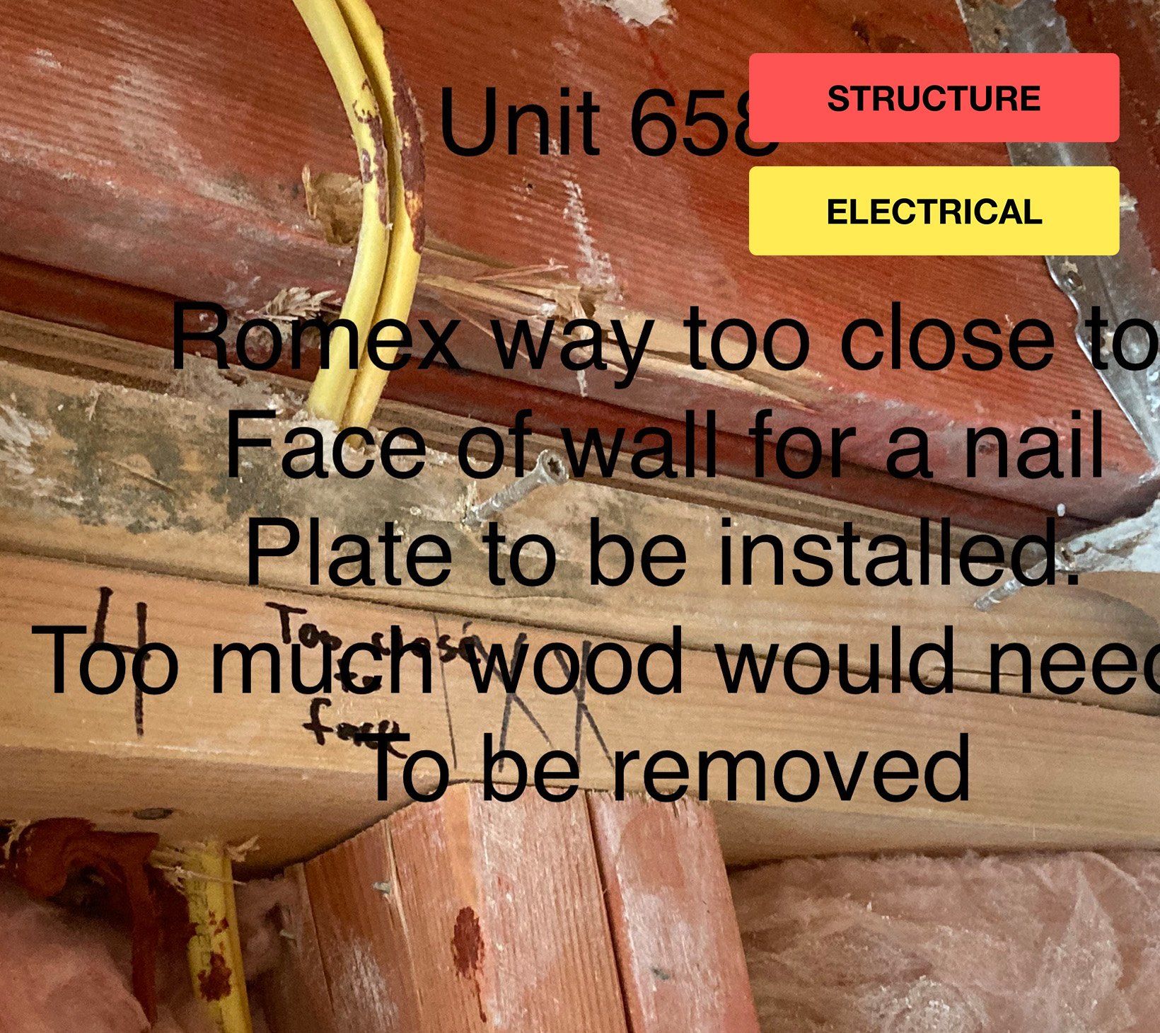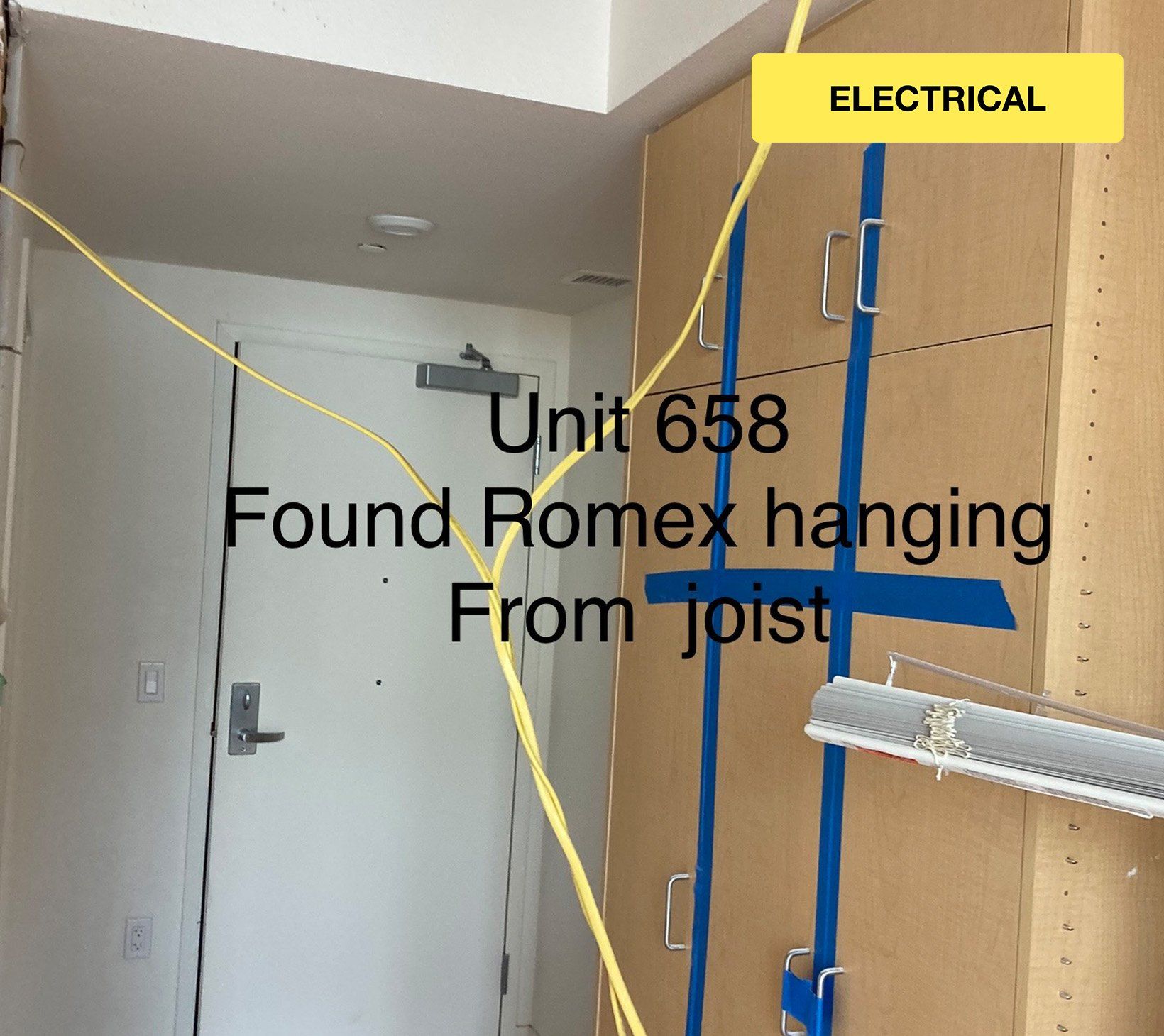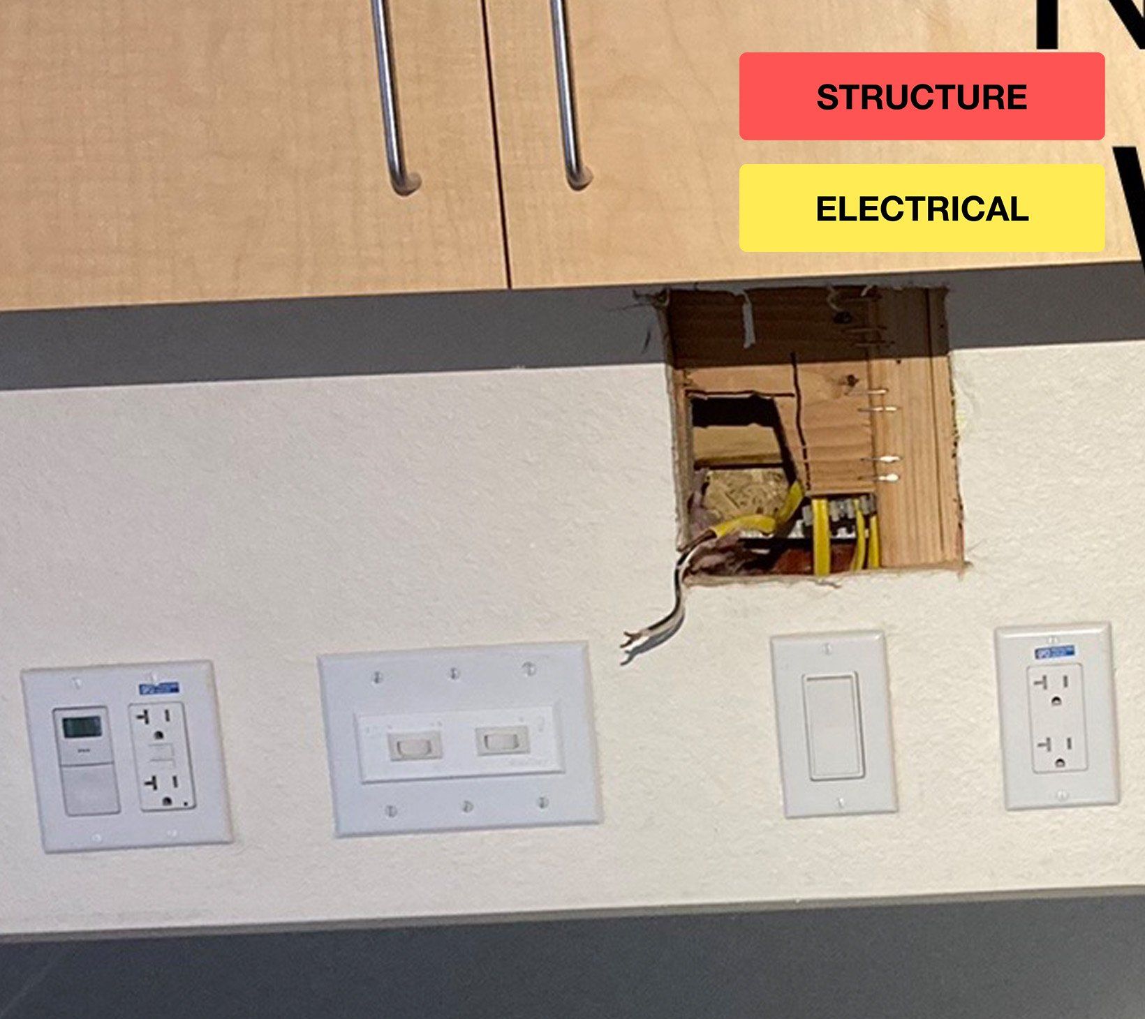 Romex cables cut in walls and other concerning situations.